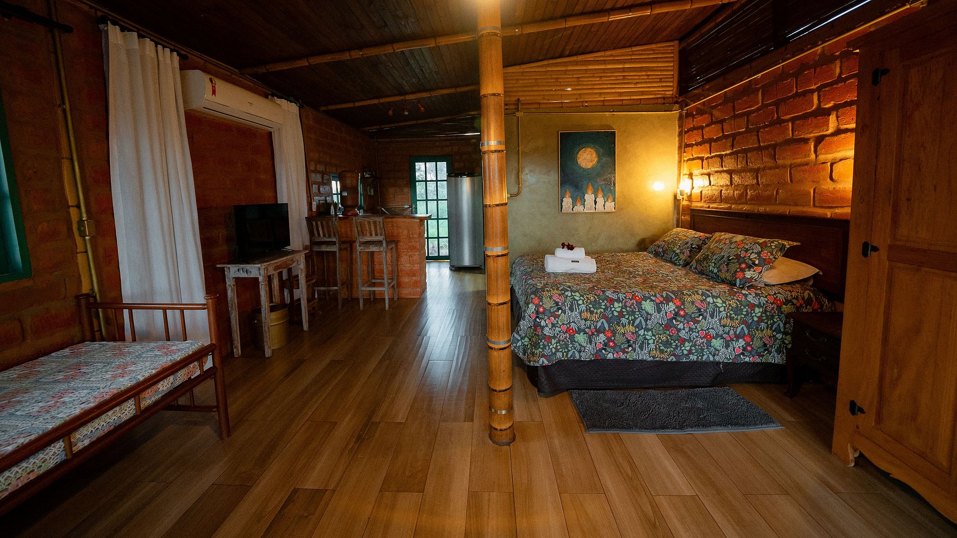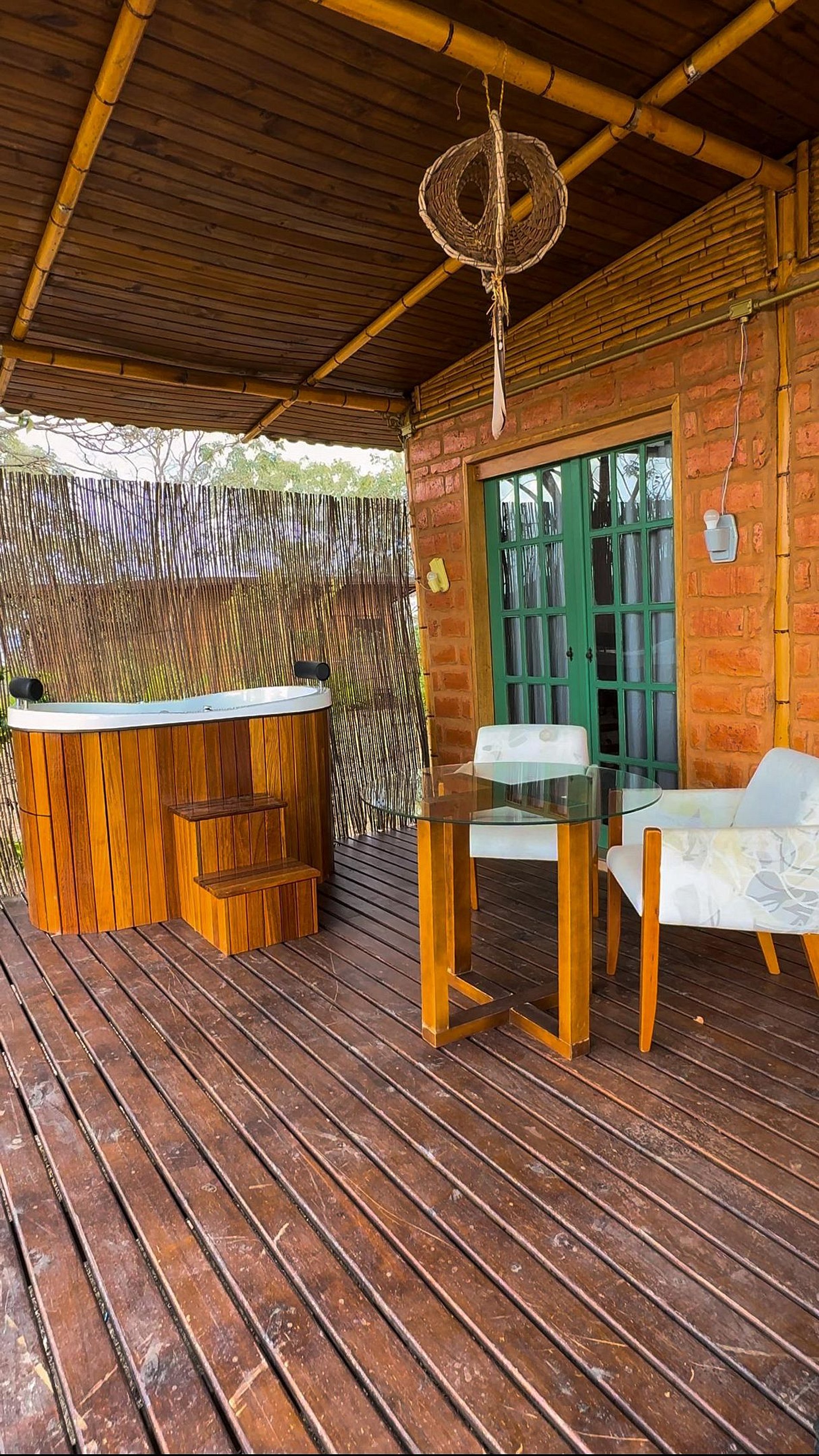 O Bangalô Ametista é perfeito para descansar, um verdadeiro convite para se desconectar e imergir na natureza exuberante do Cerrado Brasileiro. O projeto com técnicas de bioconstrução permite sentir a conexão com a natureza. A decoração e ambientação dos Bangalôs são feitas com móveis de demolição, e cada detalhe foi pensado para garantir o melhor conforto. A Fazenda conta com passeios no condomínio e acesso as cachoeiras e Rios que formam a Reserva Legal do condomínio privativo aos moradores e hospedes.
